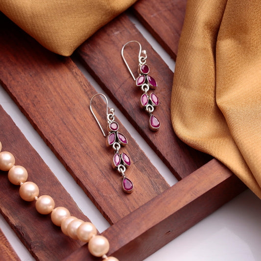 925 Silver Rose Quartz& Garnets Uncut Stone Earrings βHandmade, Vibrant Energy, Perfect Gift for Women