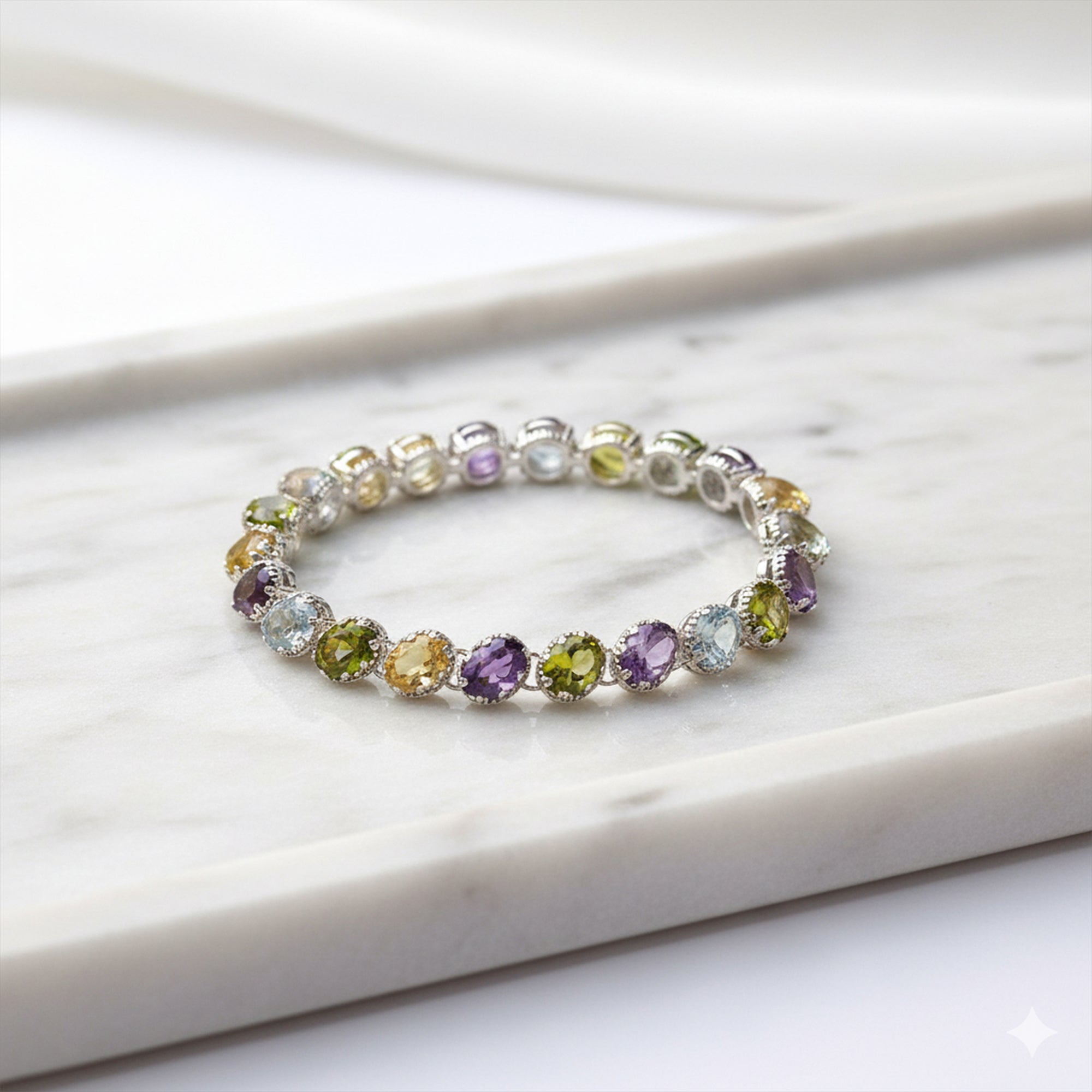 925 Silver Elegant Multistone Bracelet - Handcrafted Design with Vibrant Gemstones and Sterling Silver, Perfect for Stylish Everyday Wear