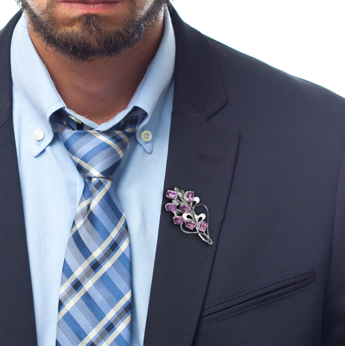 Decrease quantity for 925 Sterling Silver Amethyst Brooch | Royal Purple Gemstone Pin | Handcrafted Women’s Luxury Jewelry Gift