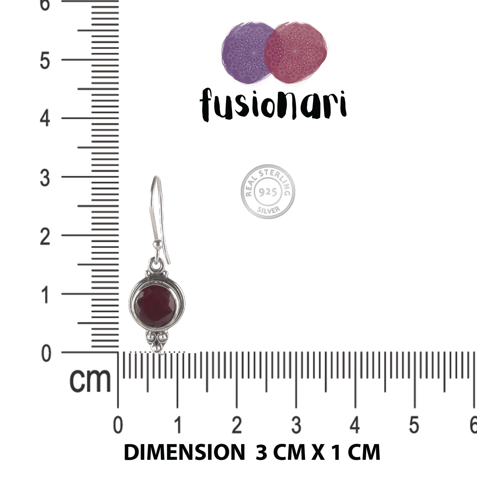 Fusionari ruby silver earrings β deep red stones for a classy and feminine appeal.