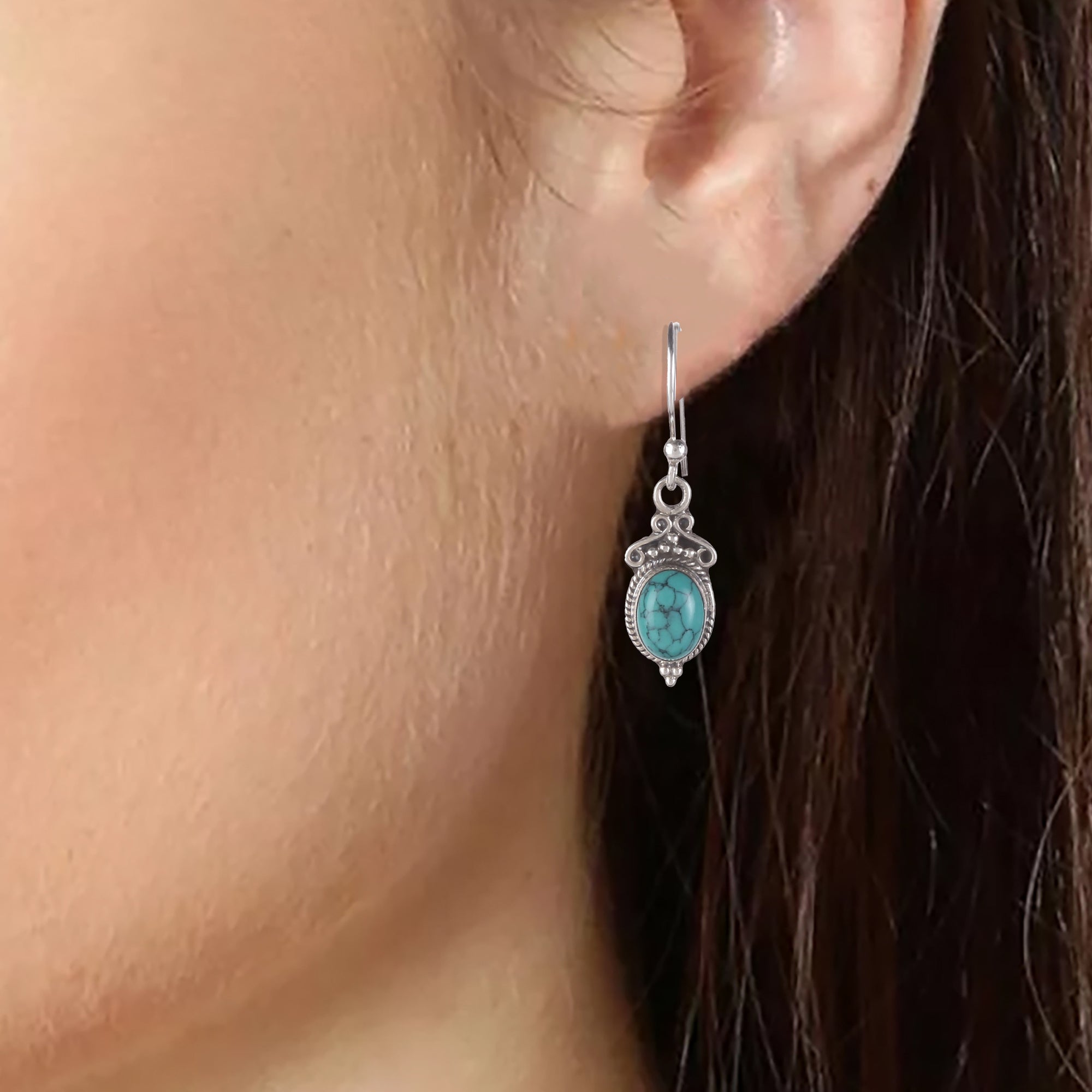 Description: Minimalist turquoise sterling silver ear tops. Lightweight and versatile for daily wear.