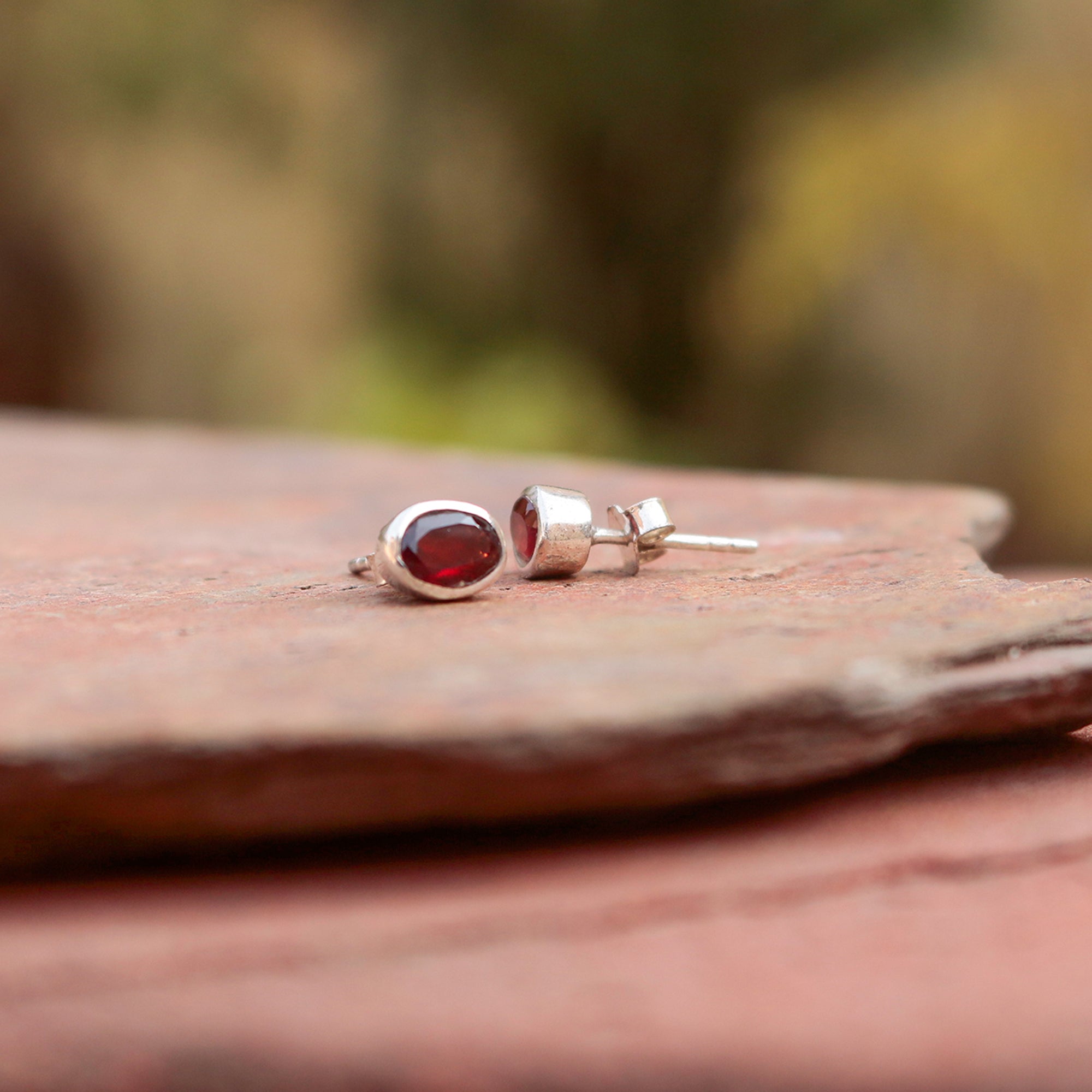 Fusionari 925 sterling silver garnet eartops — subtle sparkle with refined finish