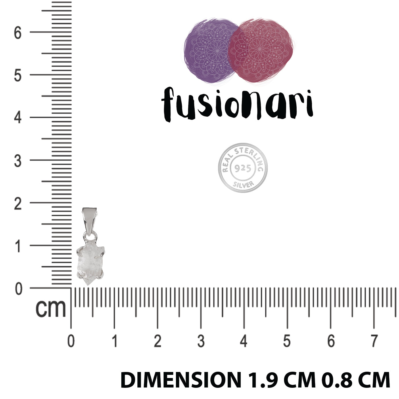 Fusionari 925 silver Quartz pendant — clear crystal stone believed to enhance clarity, healing & positive energ