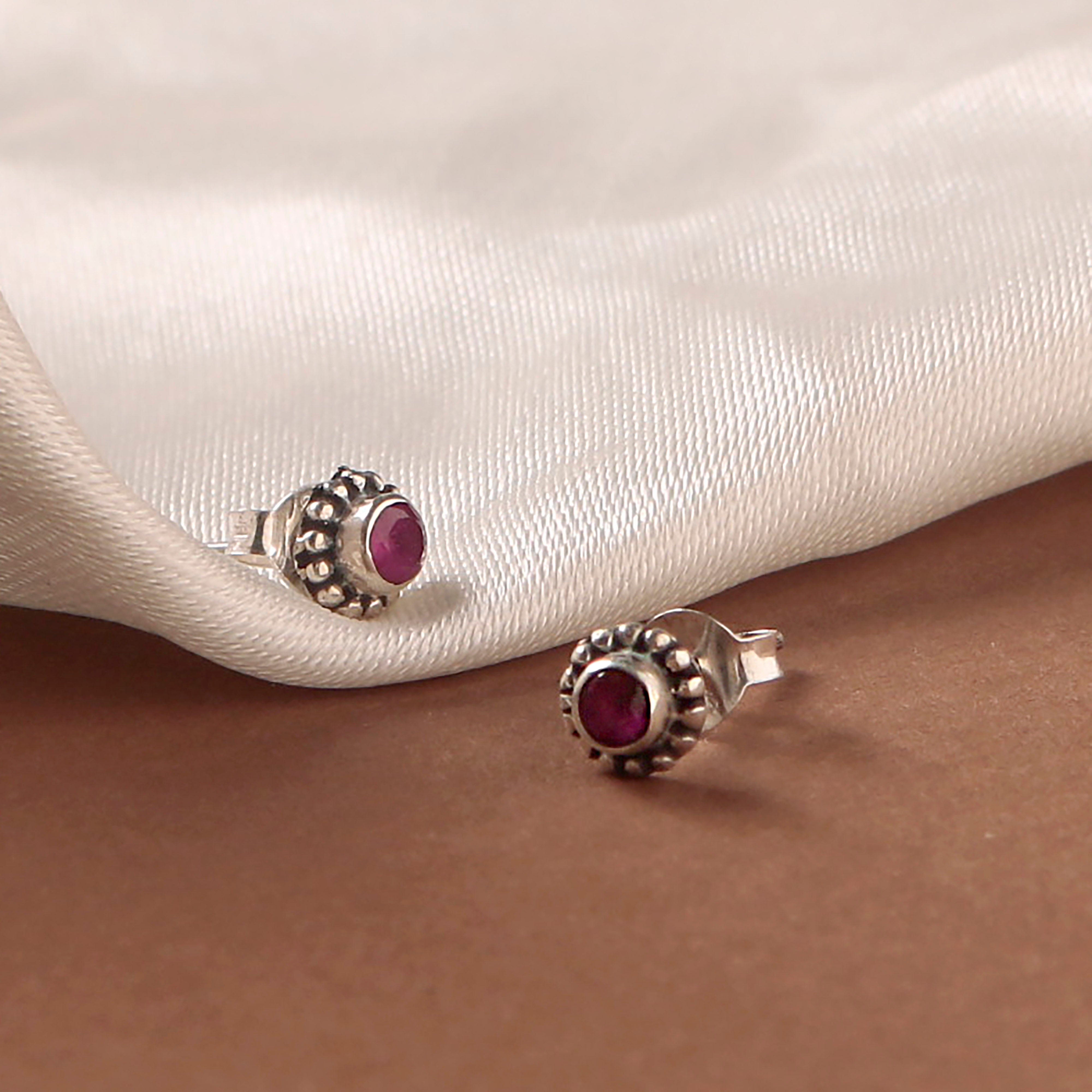 Fusionari 925 sterling silver Ruby eartopsβrich red stones for a luxurious appeal.