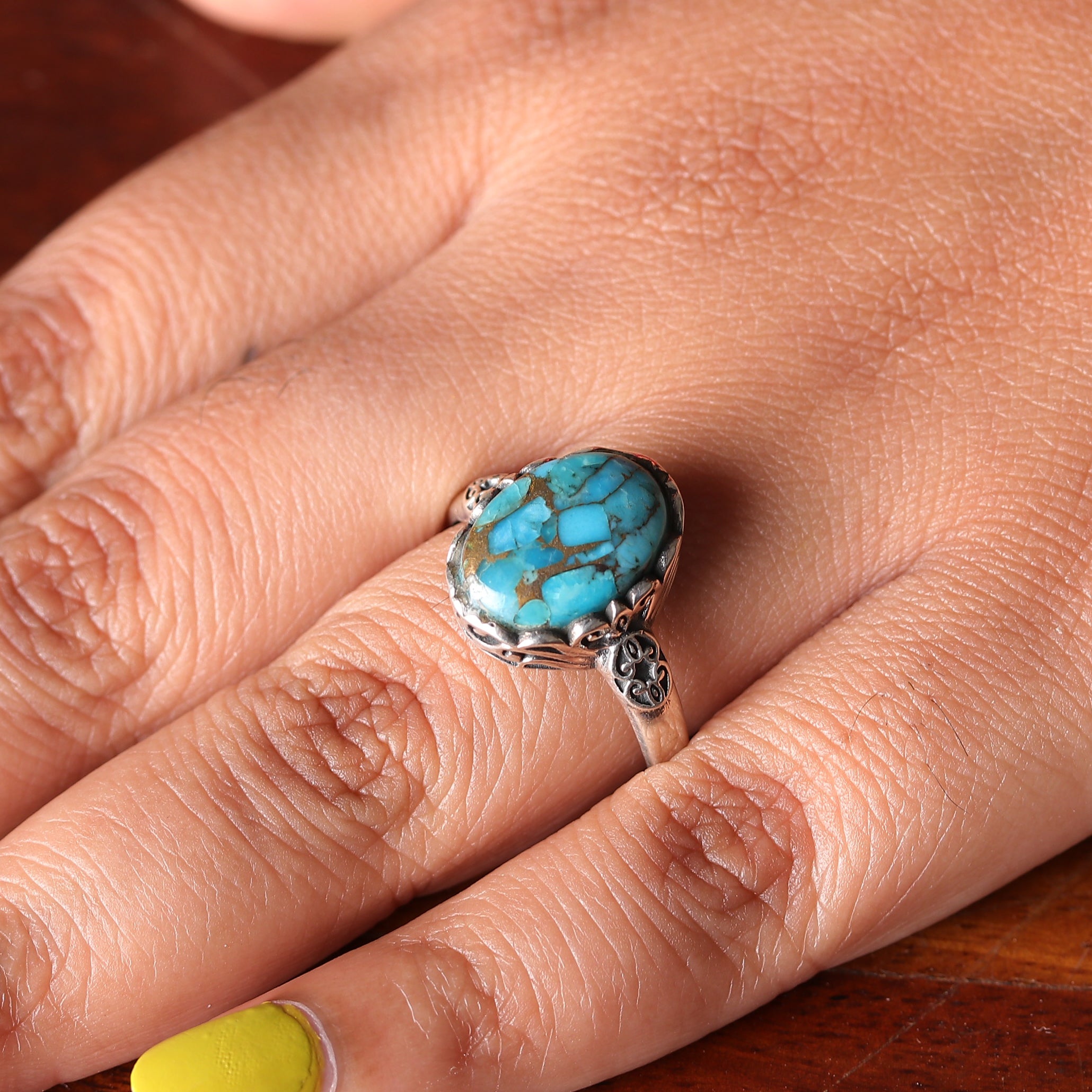 Fusionari 925 Silver Turquoise Ring – Stunning sky-blue natural turquoise set in sterling silver. A handcrafted piece offering calming and positive vibes.