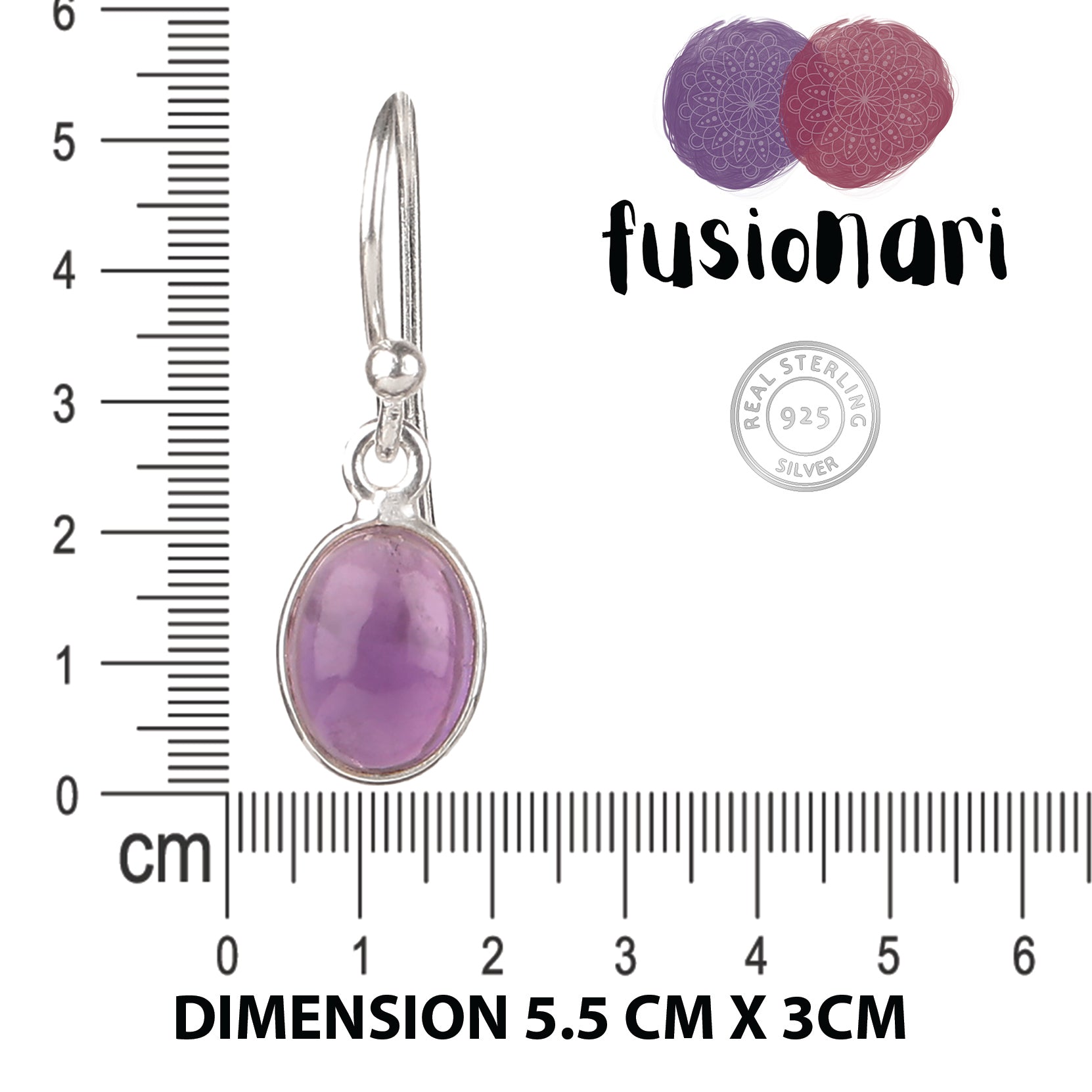 Fusionari 925 sterling silver Amethyst earrings — soothing purple gemstones for calmness and graceful everyday elegance.