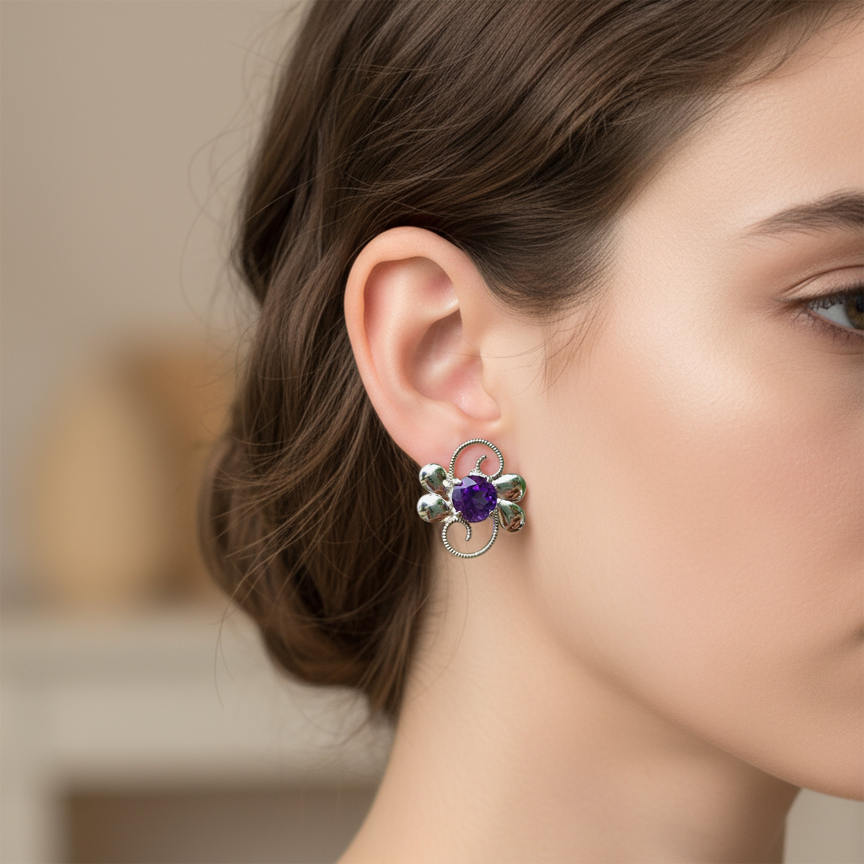 Add elegance to your style with these 925 sterling silver amethyst earrings. Featuring vibrant purple gemstones in a polished silver setting, these earrings are handcrafted for everyday comfort and timeless beauty. A perfect accessory for both casual and festive wear.