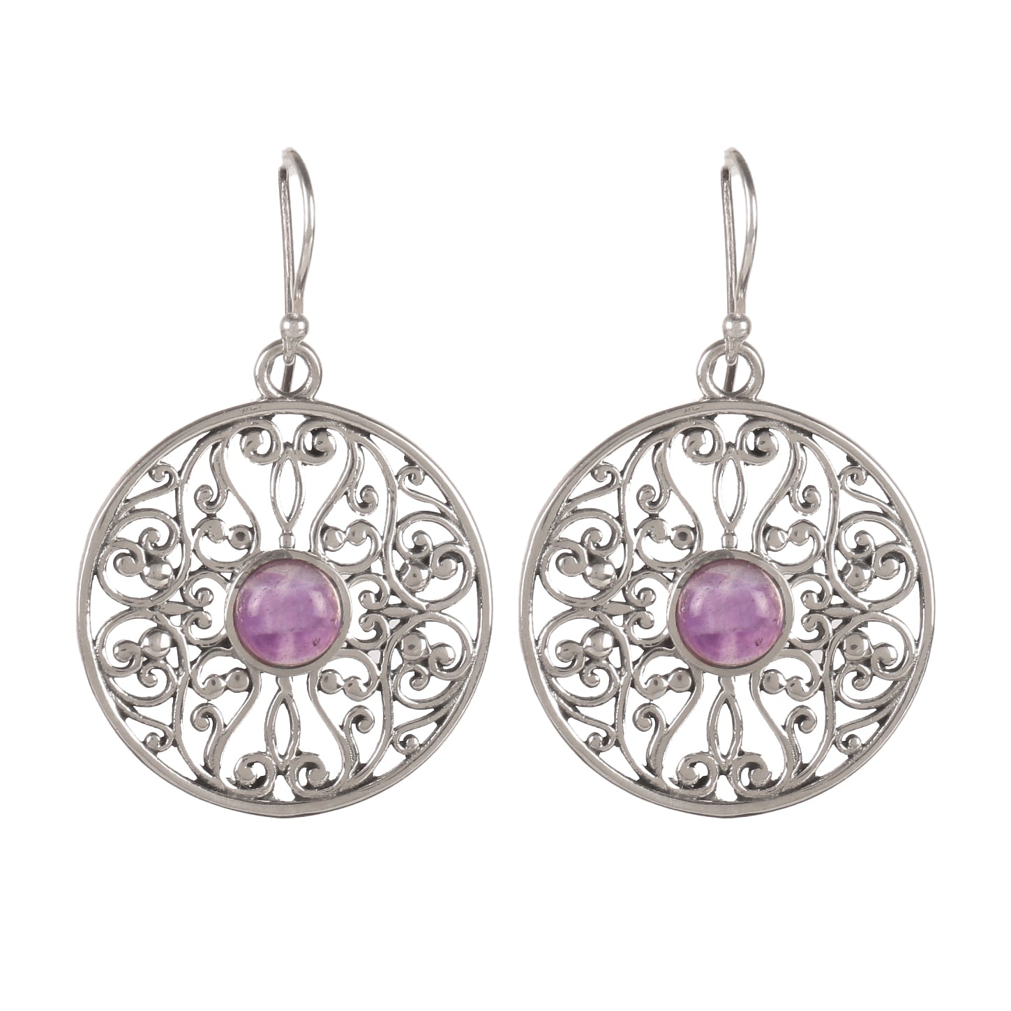 Fusionari 925 sterling silver earrings with natural amethyst stones — handcrafted statement jewelry for women with a royal touch.