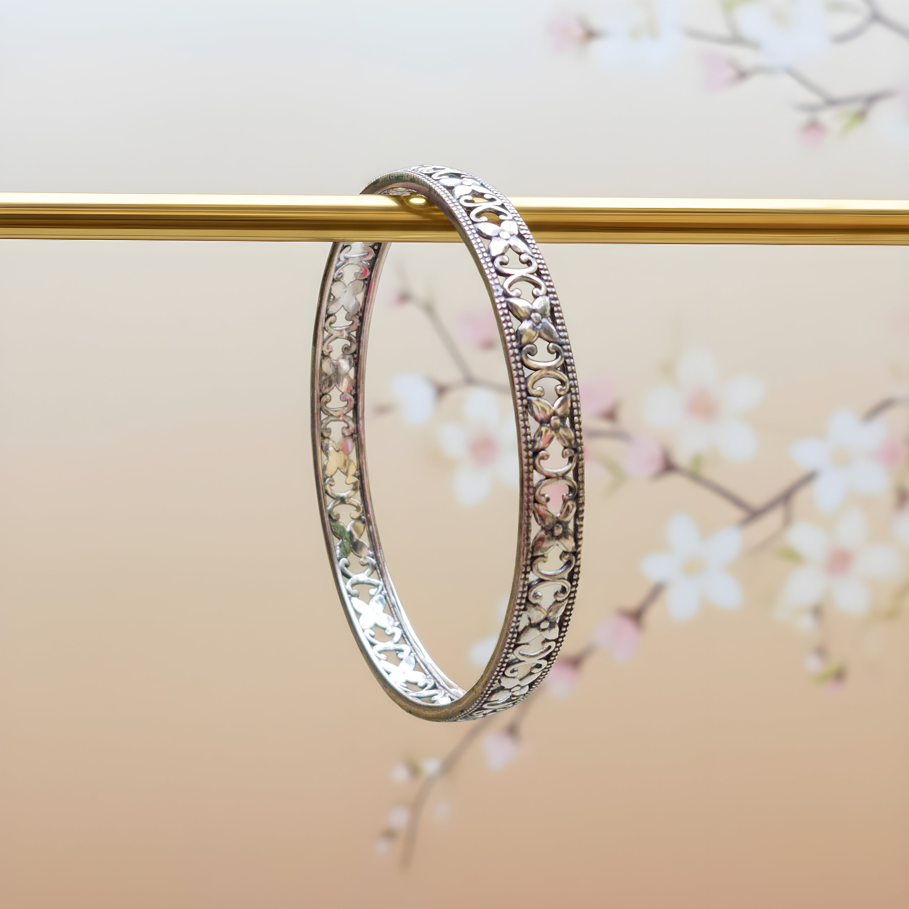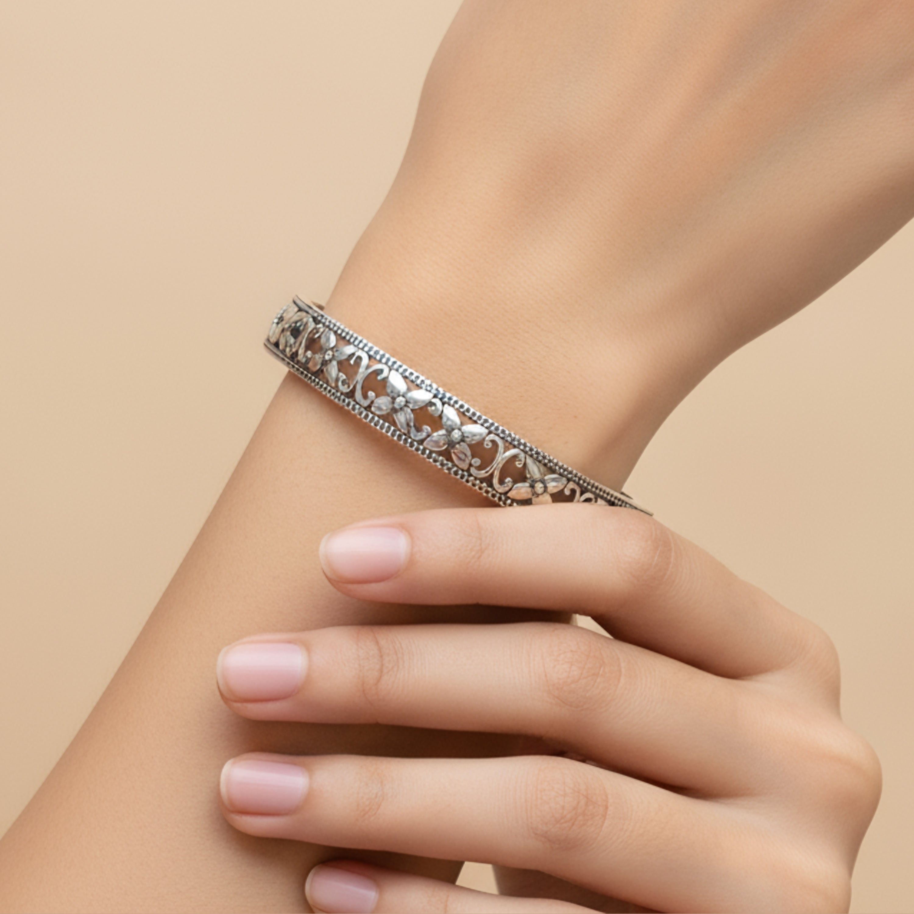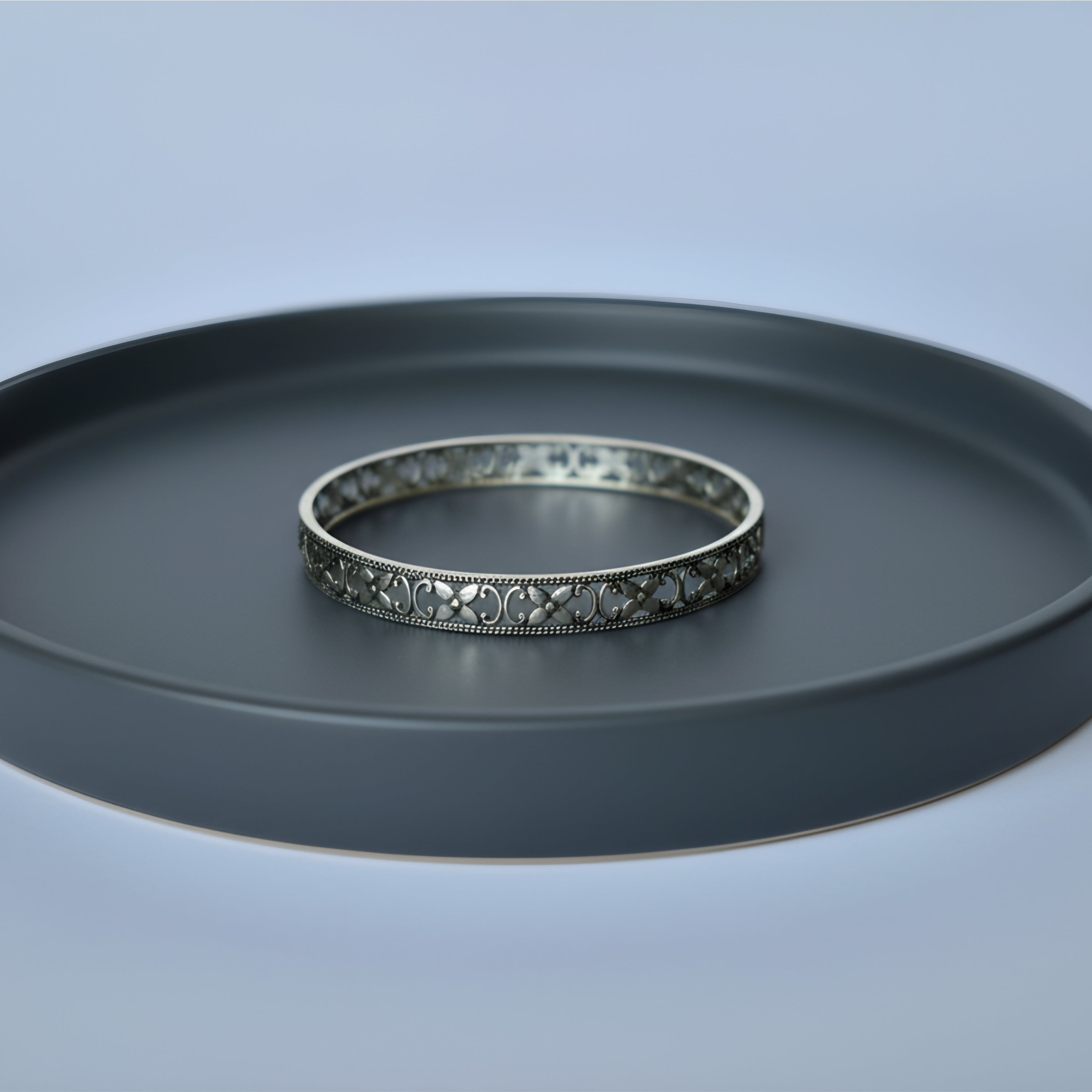 Fusionari 925 Sterling Silver Bangle for Women | Handmade Minimalist Jewelry | Unique Healing Crystal Design |