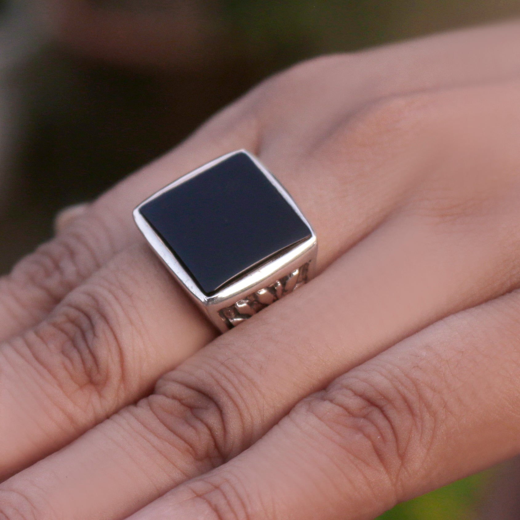 Increase quantity for Fusionari 925 Sterling Silver Black Onyx Ring for Women | Handmade Minimalist Jewelry | Unique Protective Stone Design | One Piece