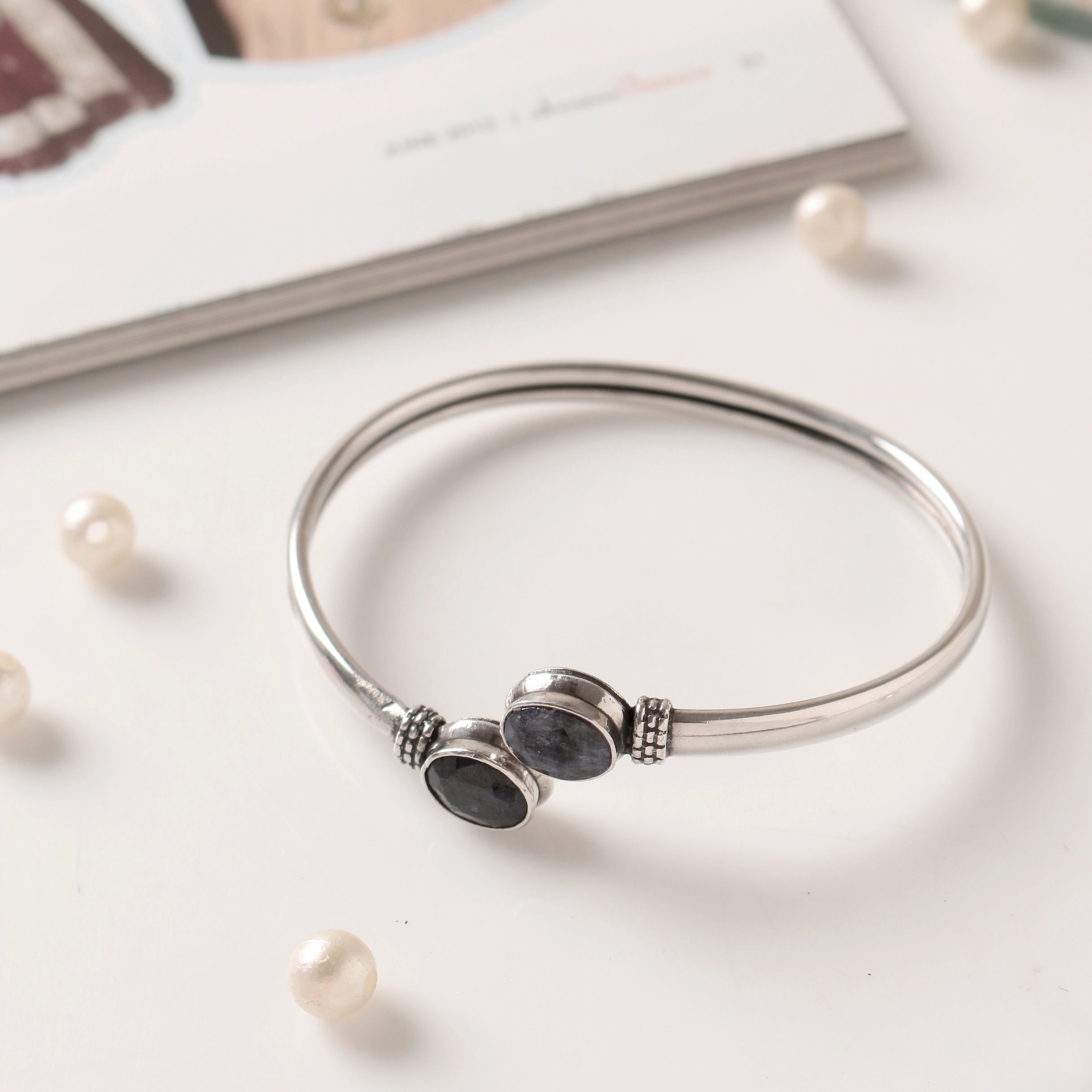 Experience classic elegance with deep blue Lapis Lazuli stones set in 925 sterling silver. Known for wisdom and truth, this bangle blends heritage craftsmanship with modern appeal.