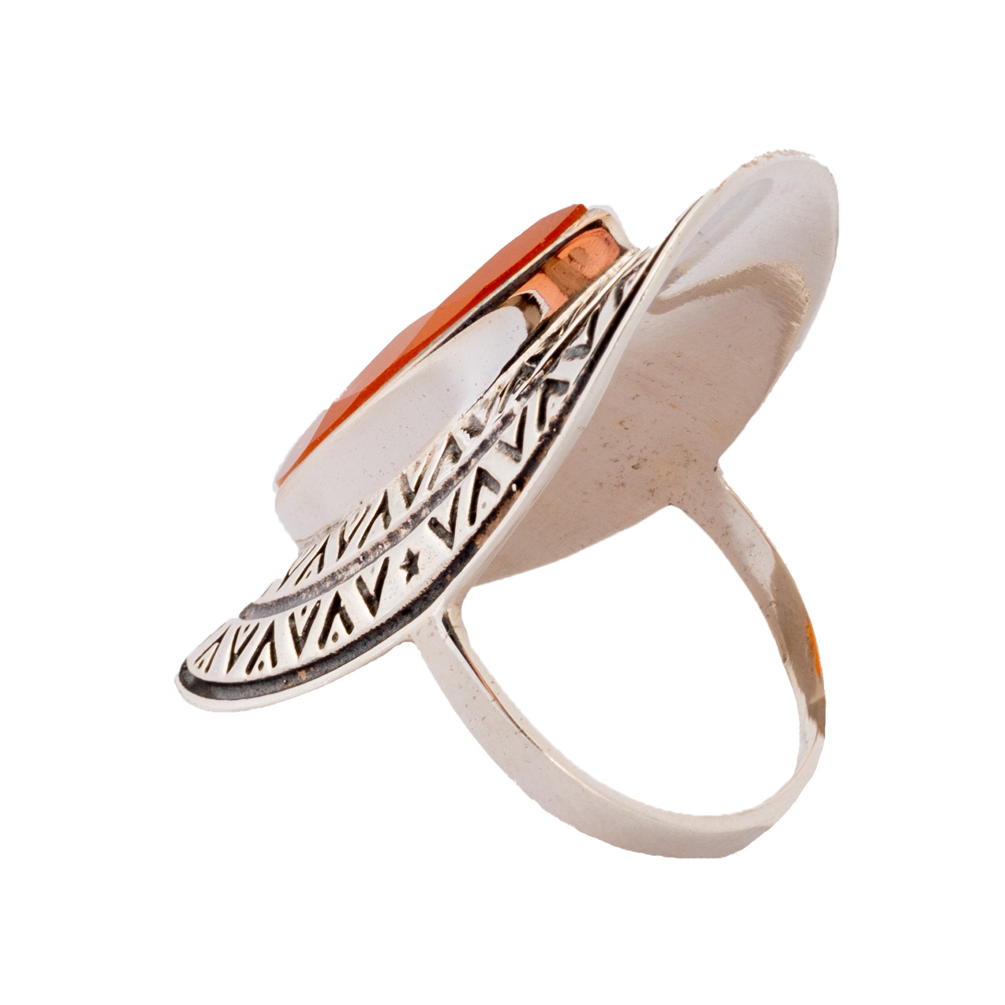 Fusionari 925 Sterling Silver Carnelian Ring for Women | Handmade Minimalist Jewelry | Unique Healing Crystal Design | Size 4.1x2 cm | One Piece
