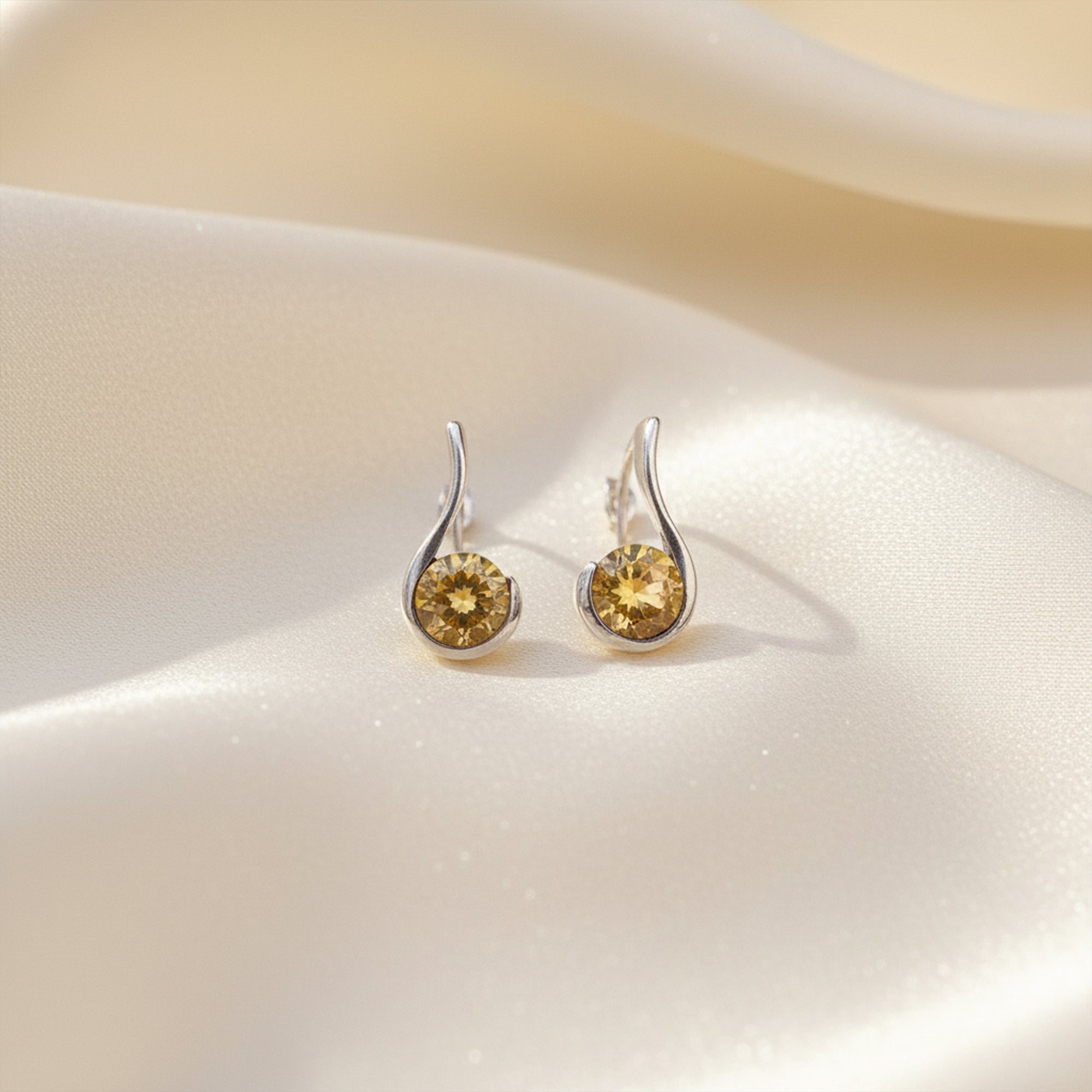 Fusionari 925 sterling silver Citrine studs — golden-yellow stones symbolizing joy, positivity, and success.