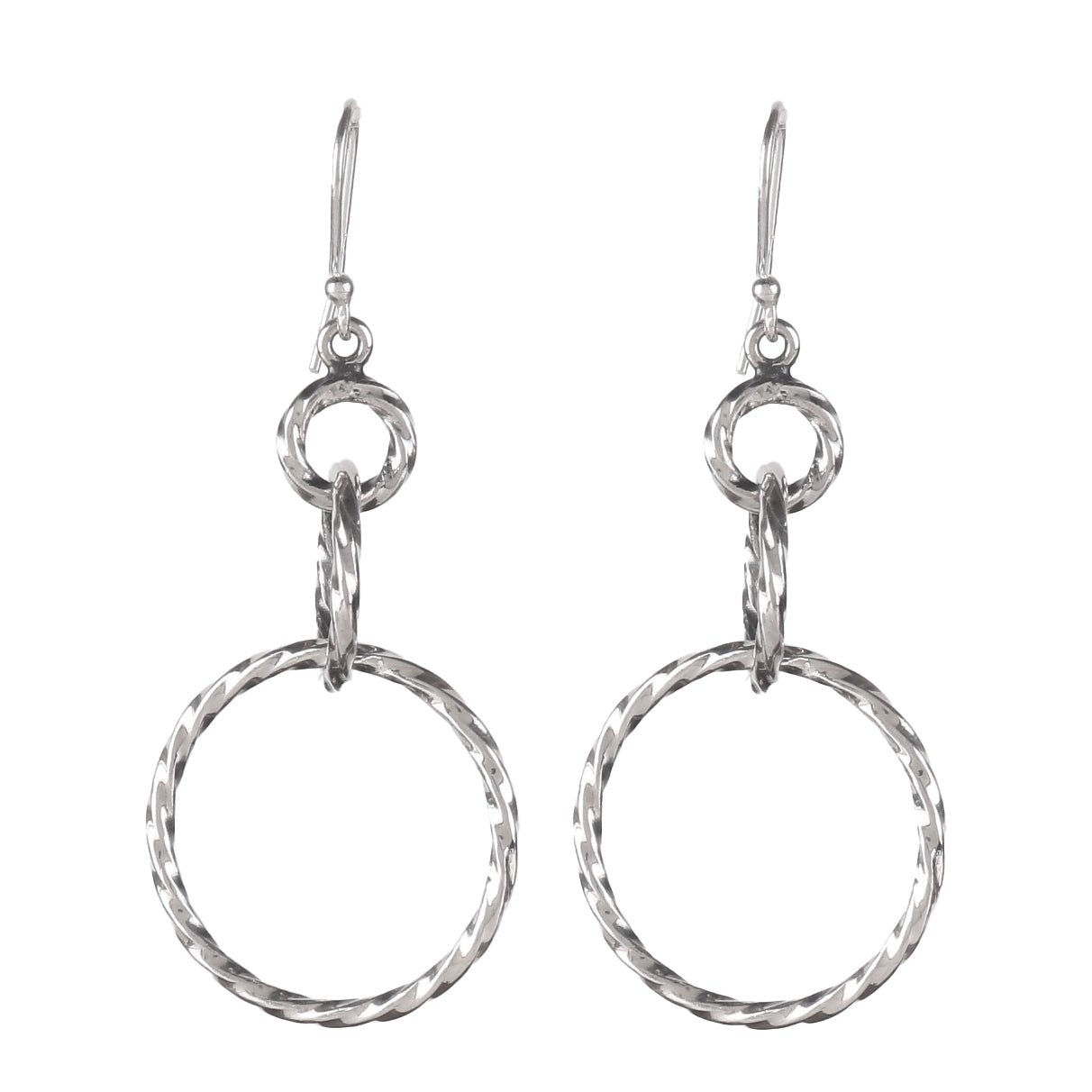Make a bold impression with these long silver earrings, perfect for a unique and fashionable look.