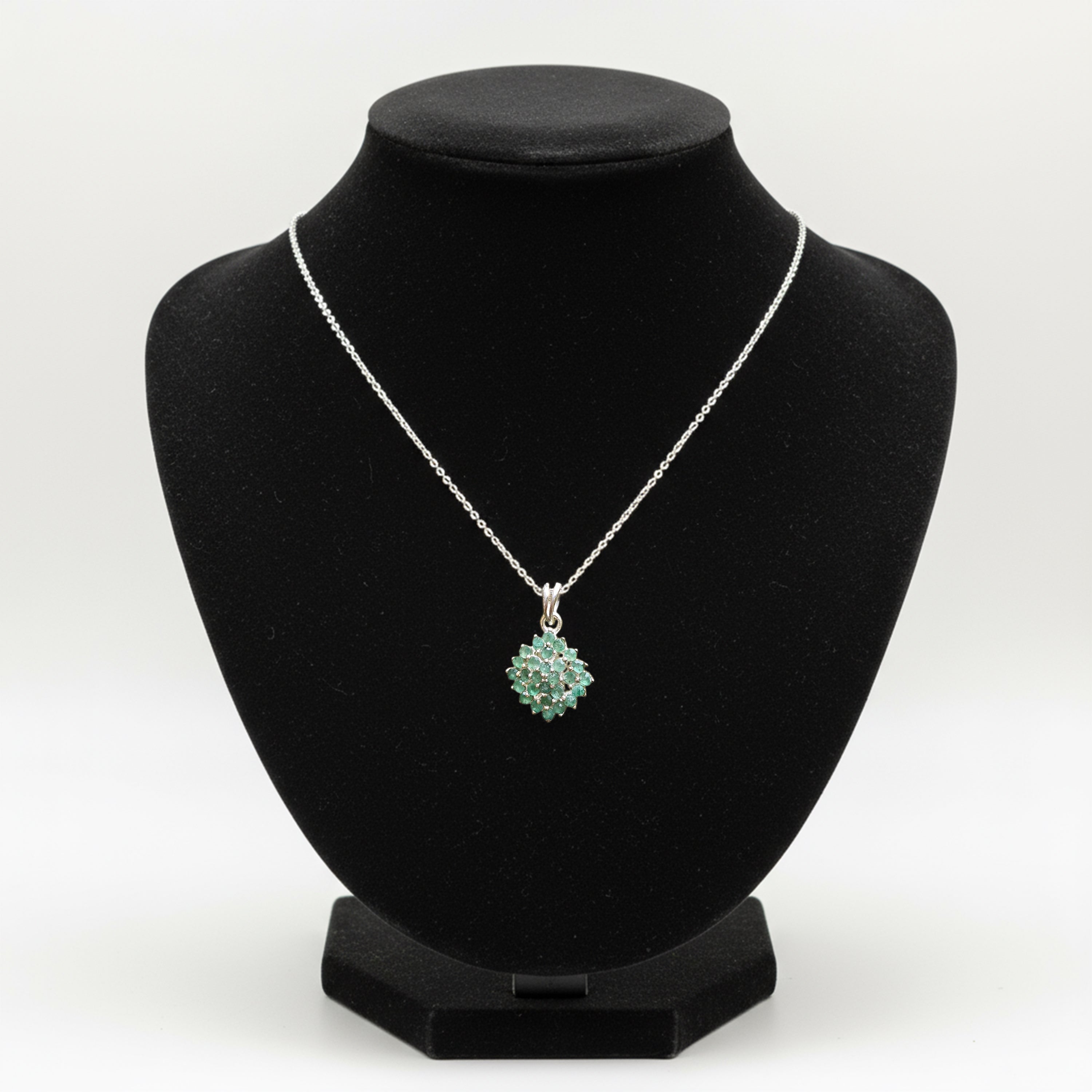 Jewellery Type: Pendant Material: Sterling Silver & Emerald Stone Metal: 925 Sterling High-Polish Silver Main Stone: Emerald Pendant Colour: Green & Silver Pendant Size: 2.1 x 1.4 cm Weight (Approx): 5.2 Grams