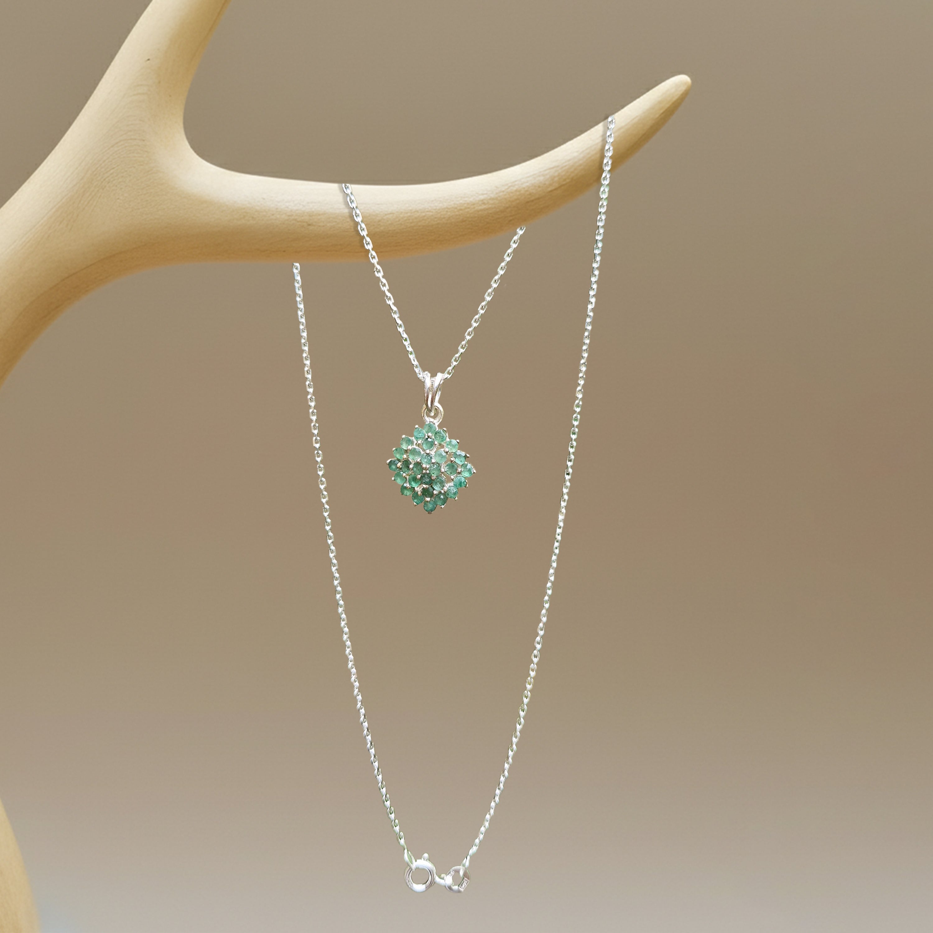 Fusionari 925 Sterling Silver Emerald Pendant Necklace for Women with 18" Chain | Handmade Minimalist Jewelry | Unique Healing Crystal Design | Size 2.1x1.4 cm | One Piece