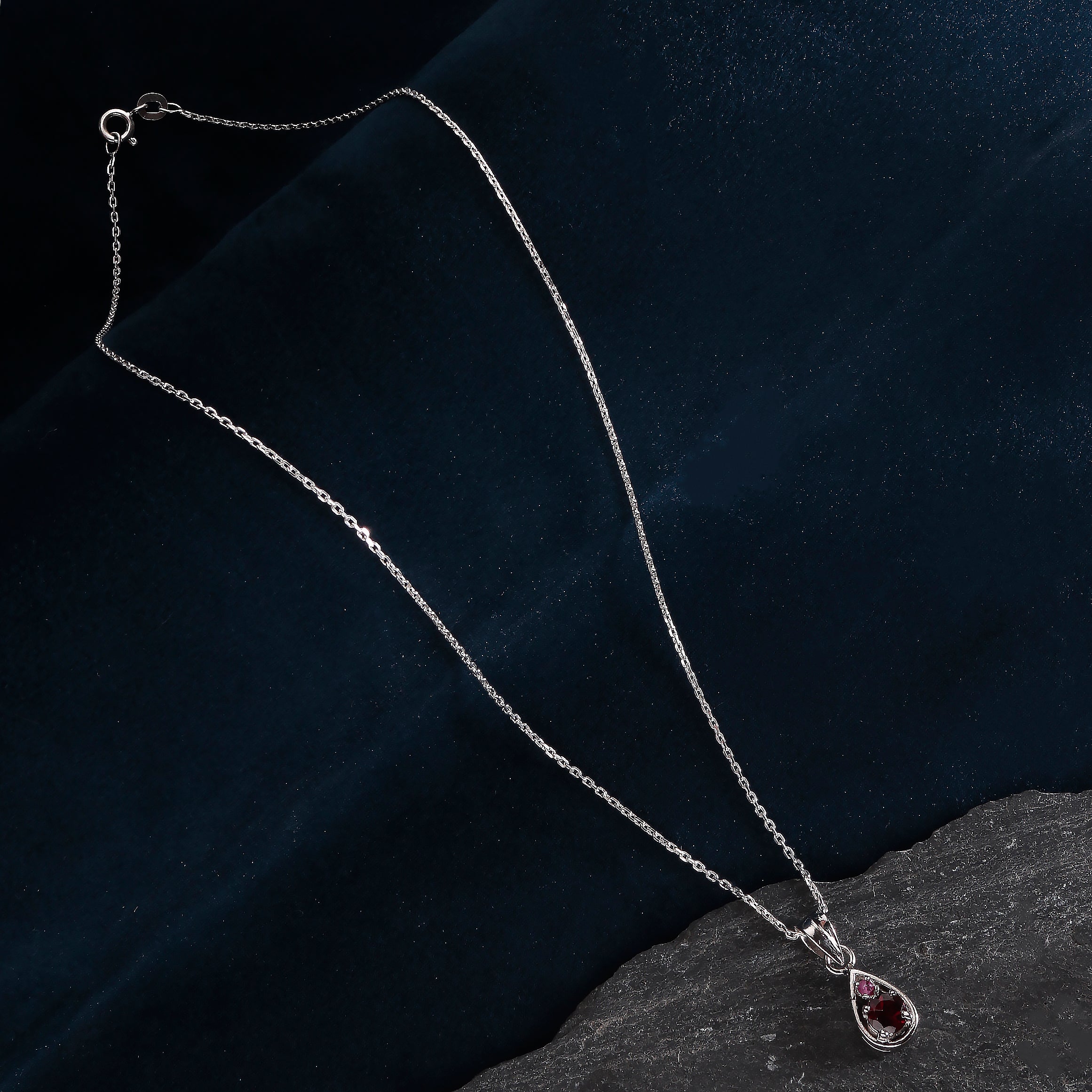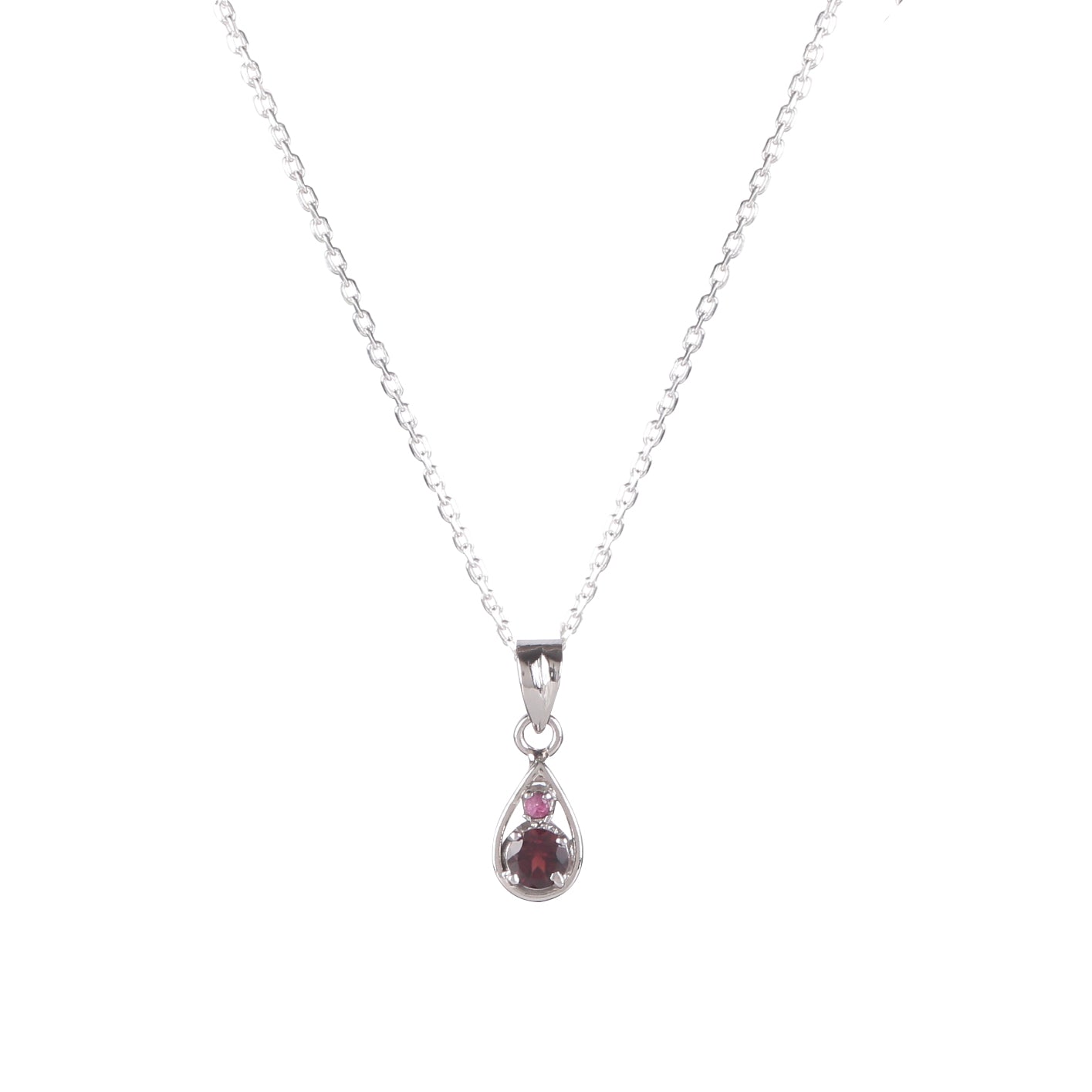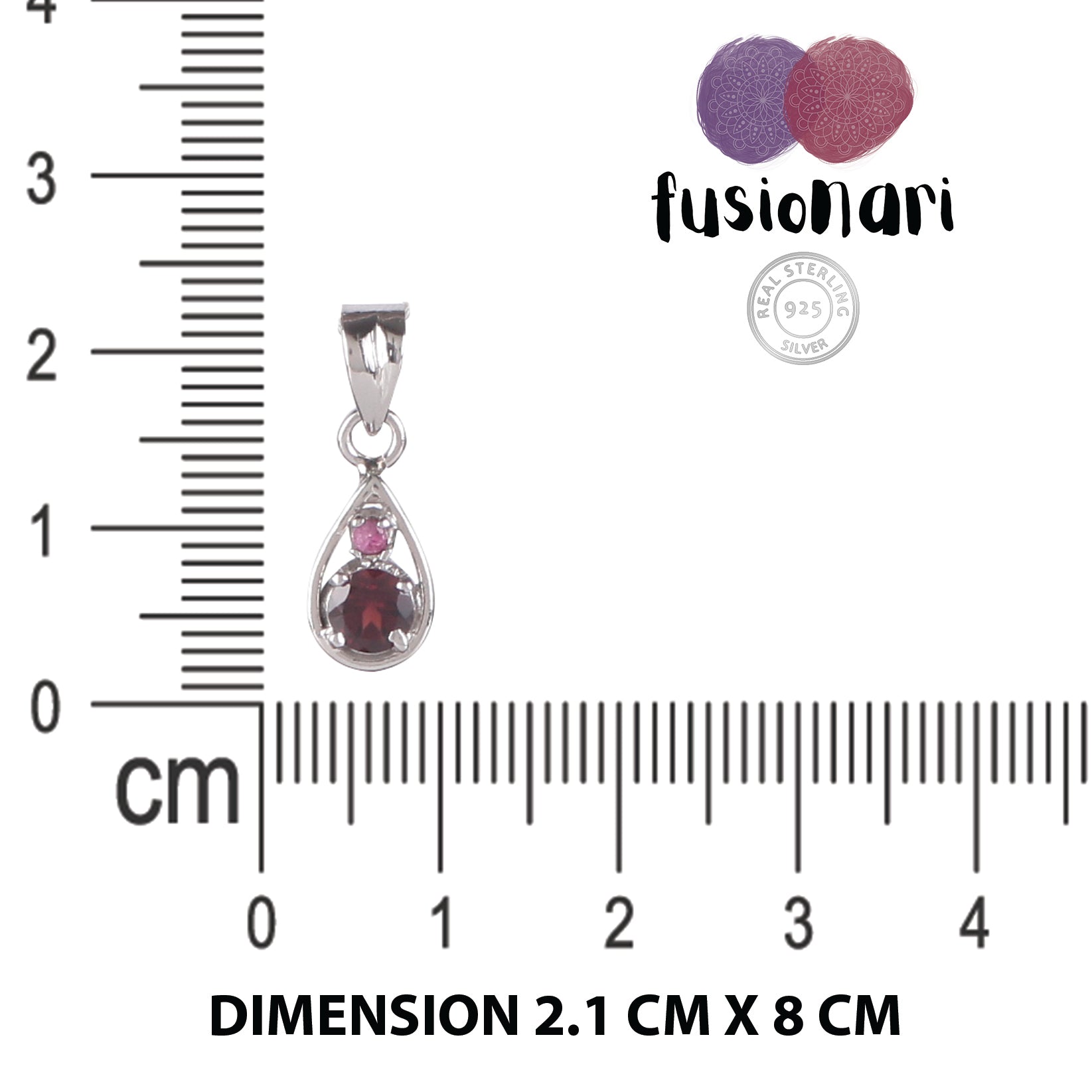 Fusionari 925 Sterling Silver Garnet Pendant Necklace for Women with 18" Chain | Handmade Minimalist Jewelry | Elegant Sparkling Design | Size 2.3x8 cm |