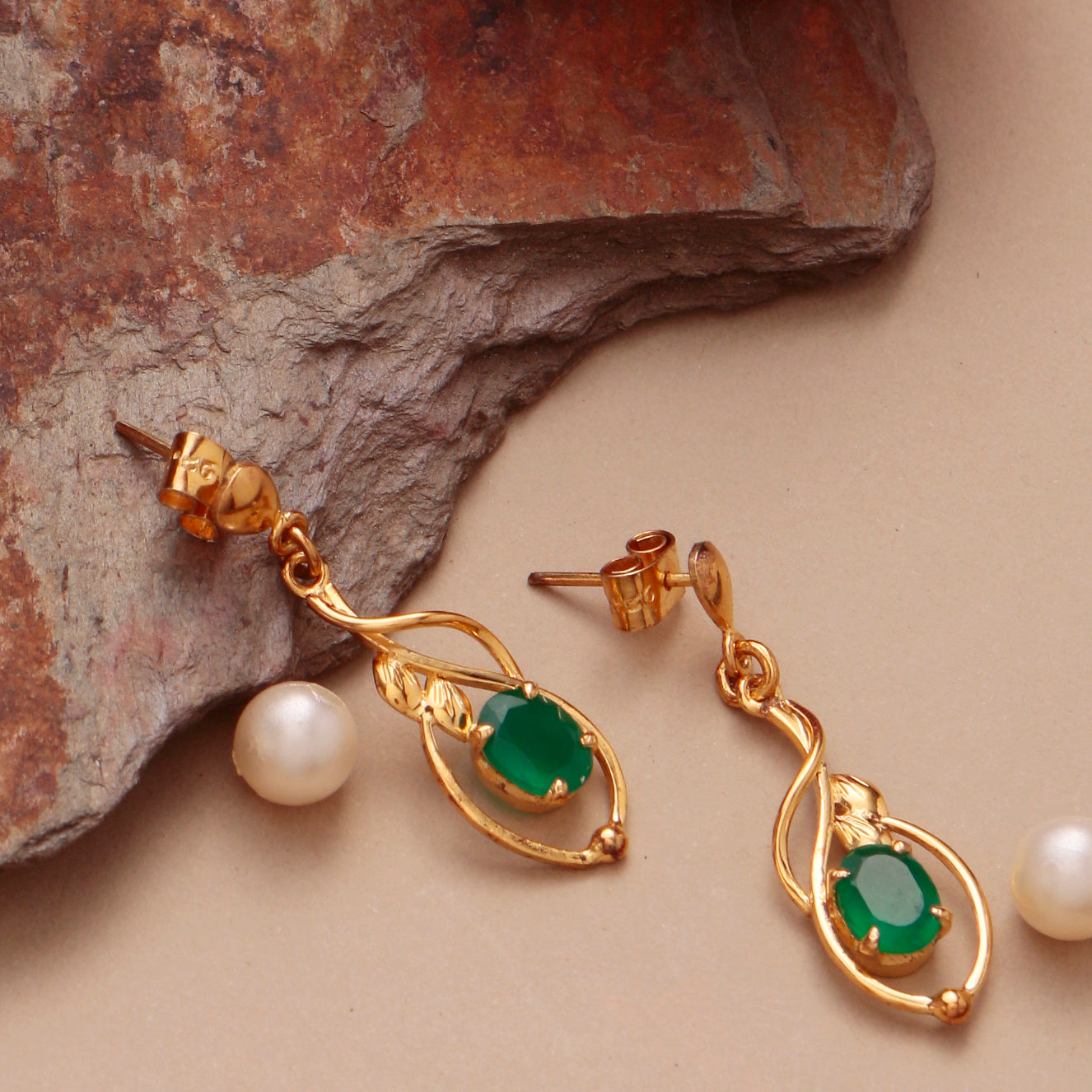 These Green Onyx earrings showcase vibrant green tones that make a bold statement, perfect for casual or festive occasions.