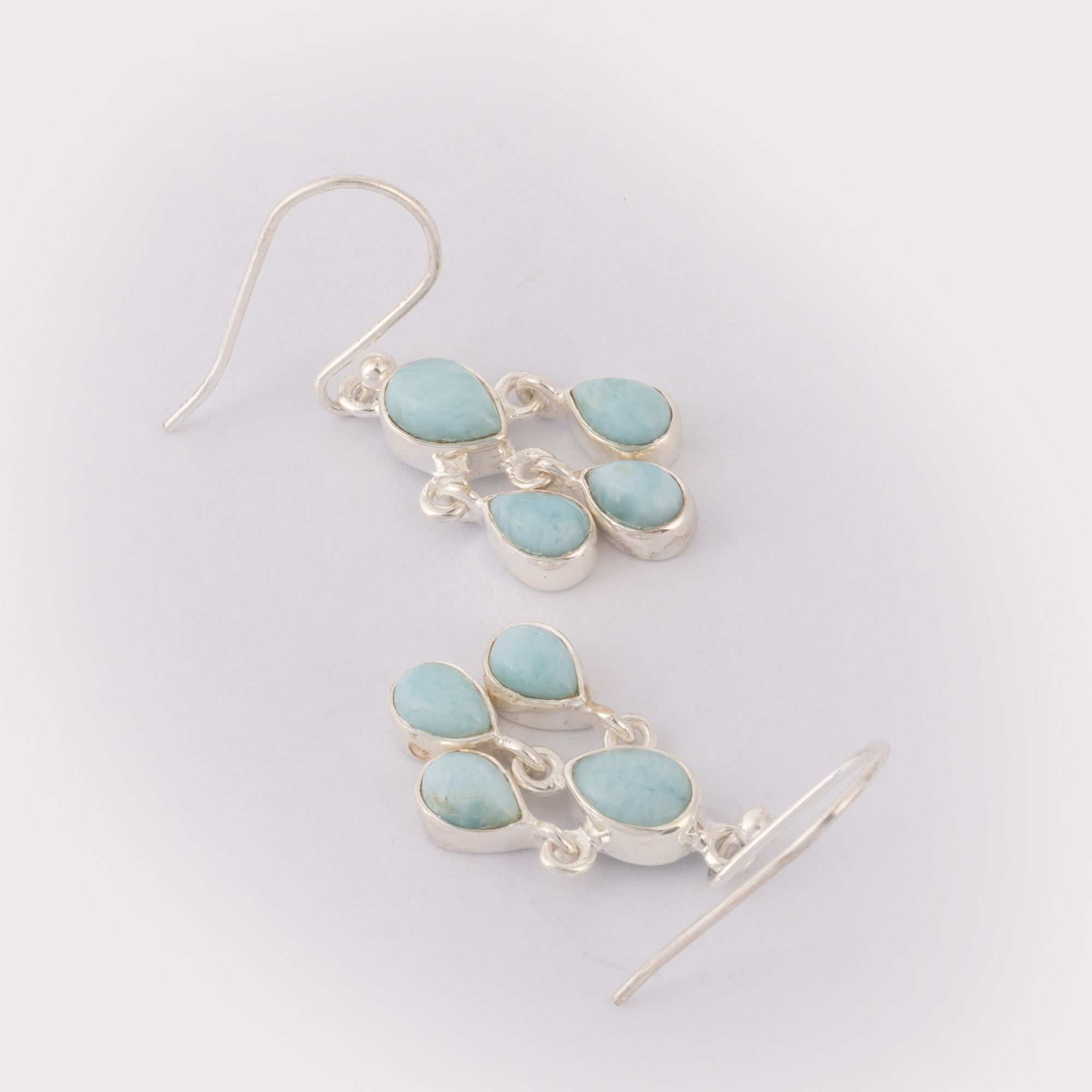 Capture the ocean’s beauty with these Larimar silver earrings. Known for its calming blue tones, Larimar brings a tropical, soothing vibe to your style. A standout accessory for both casual and festive looks