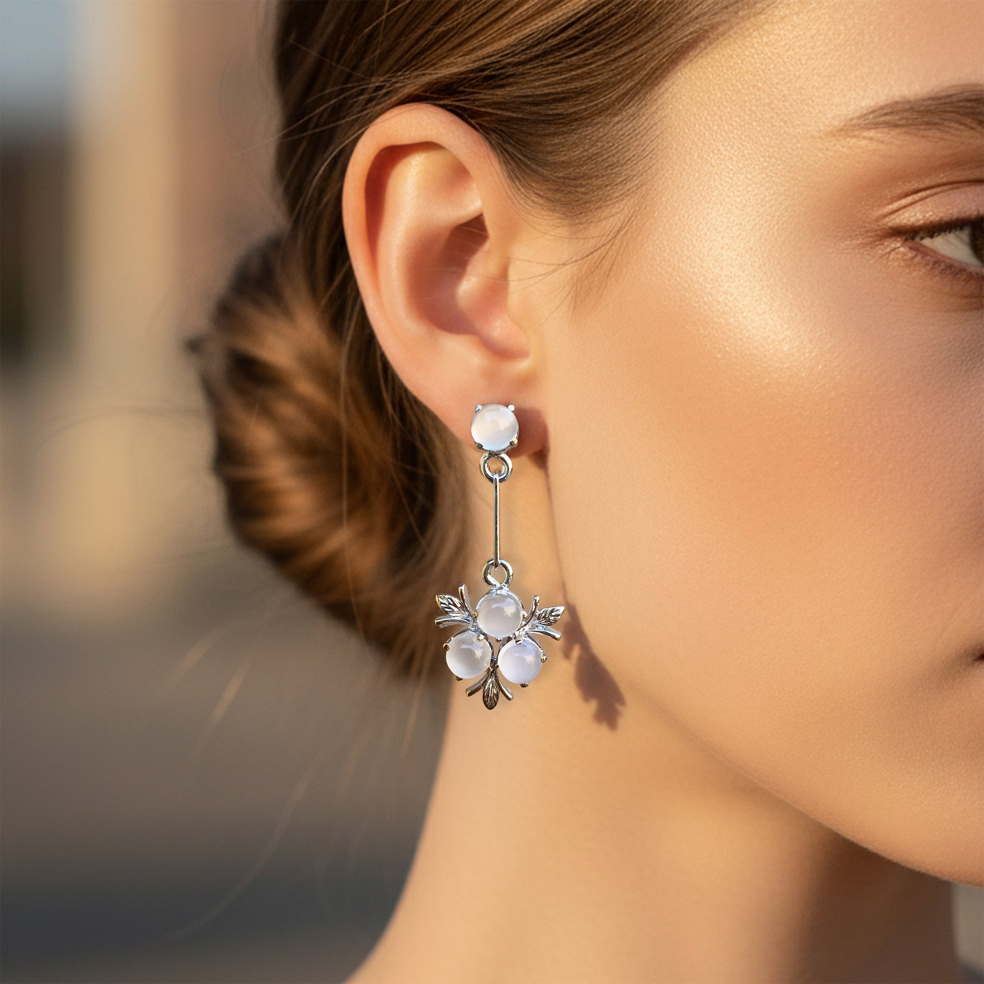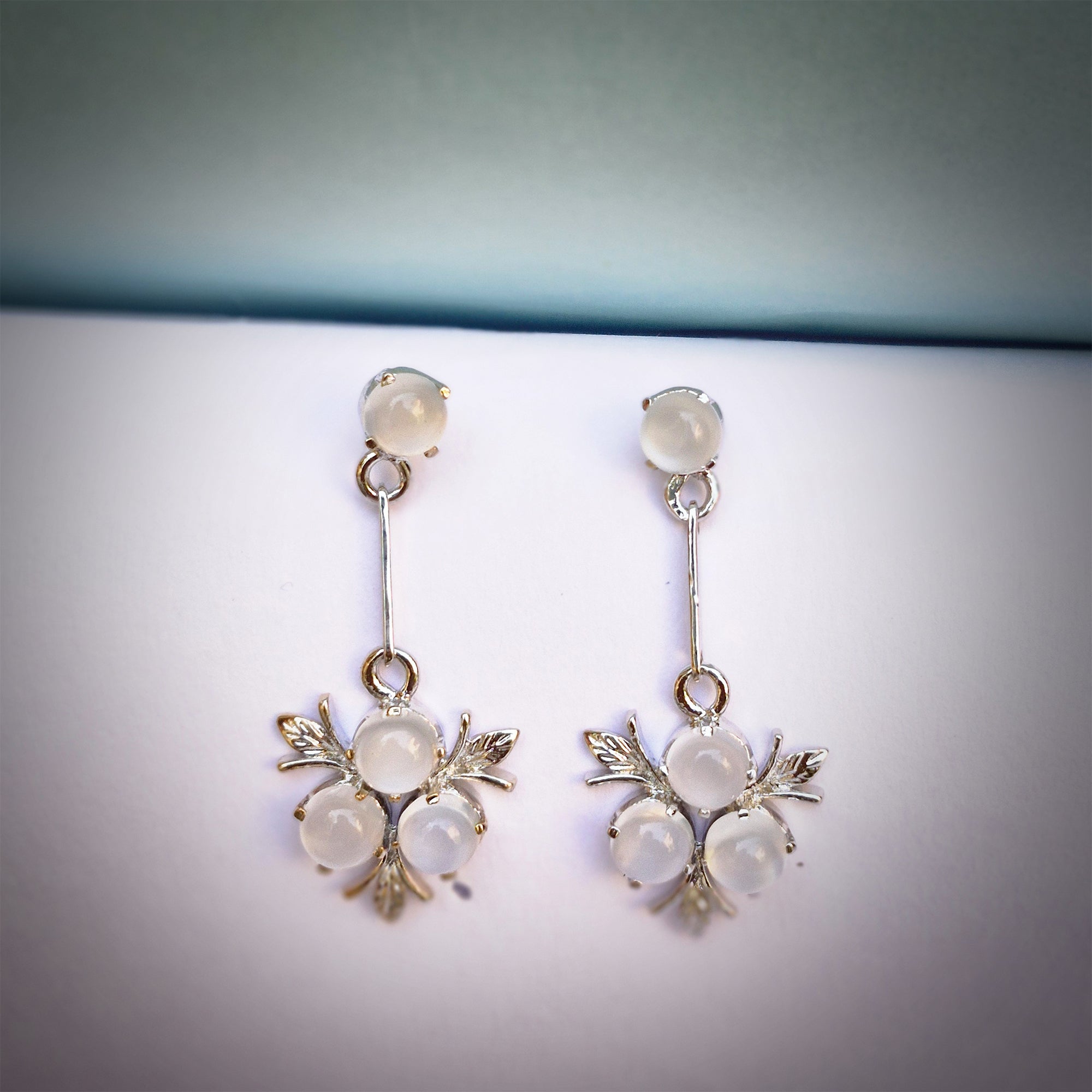 Handcrafted 925 sterling silver earrings featuring natural moonstone. Their calming shimmer makes them perfect for both everyday elegance and evening charm.
