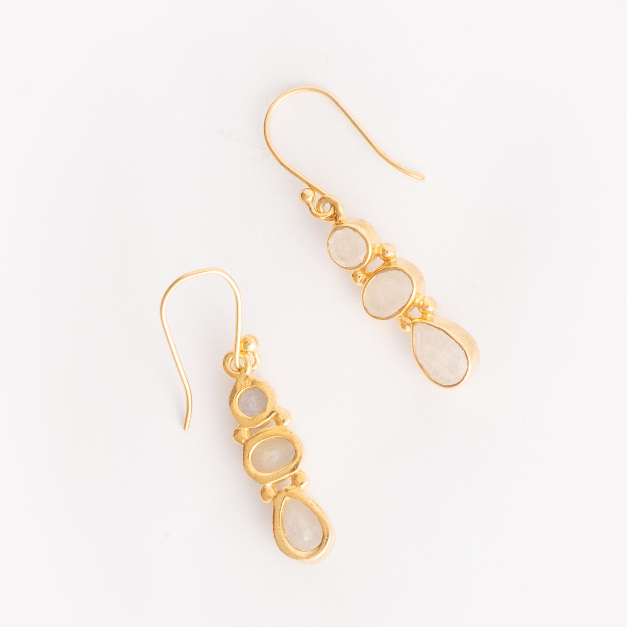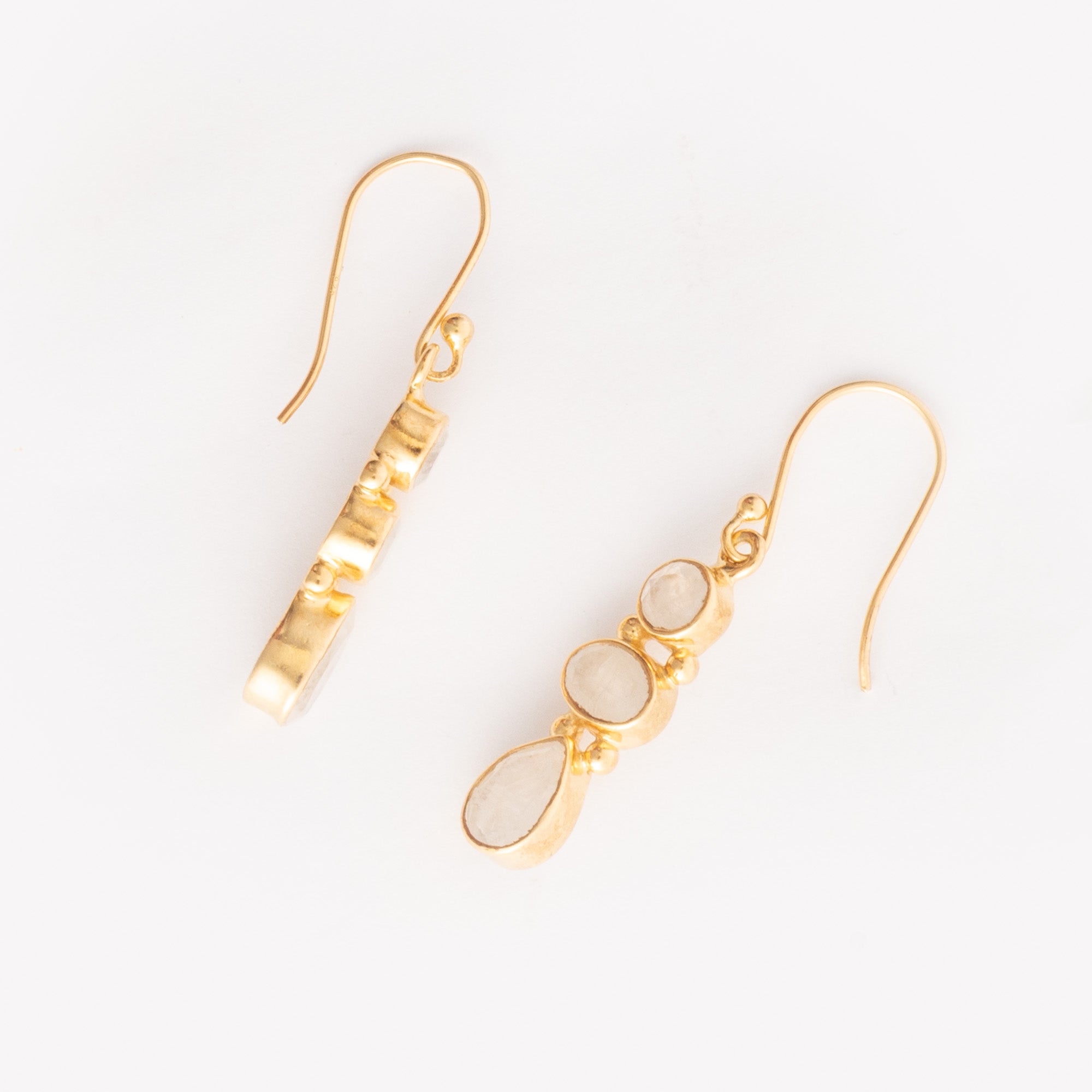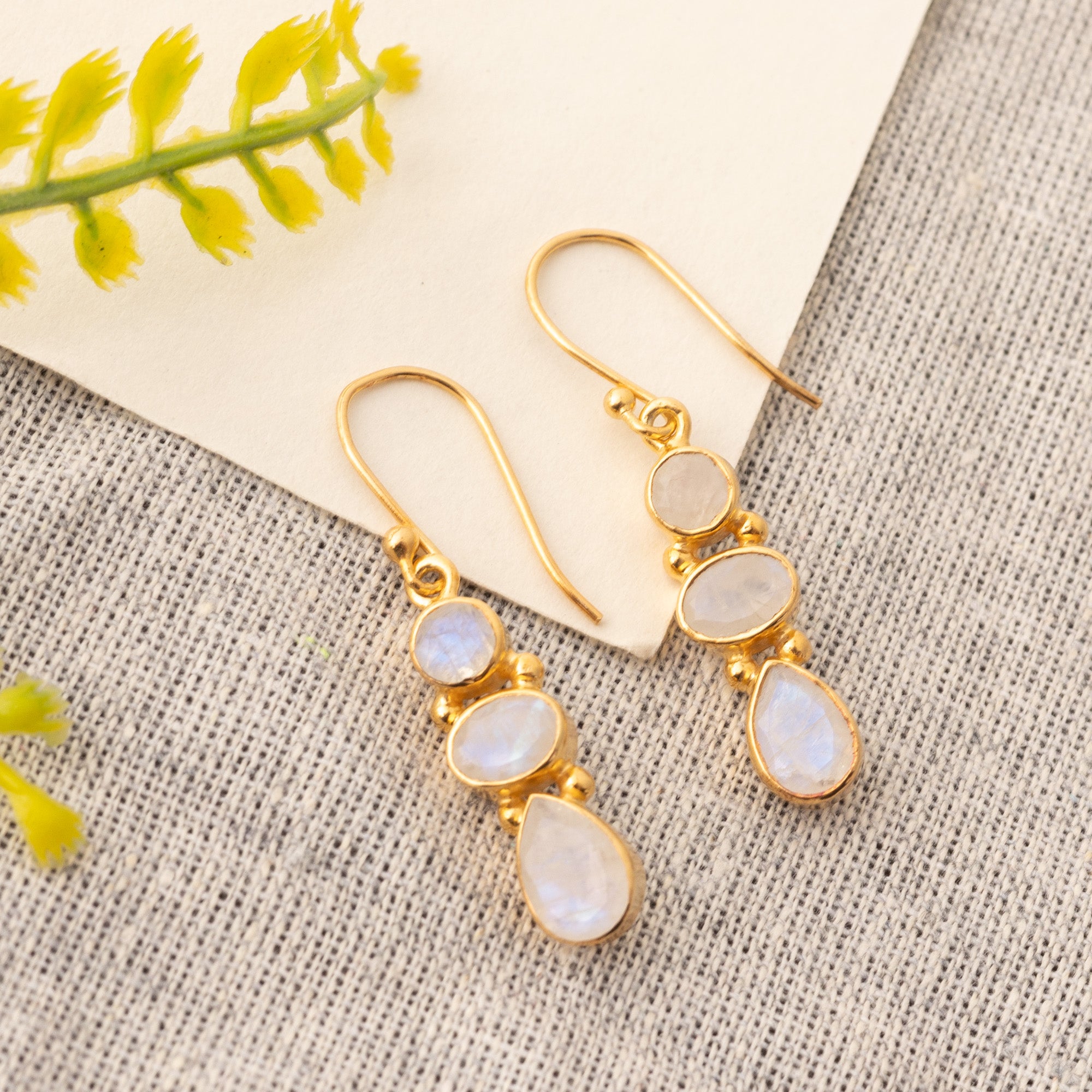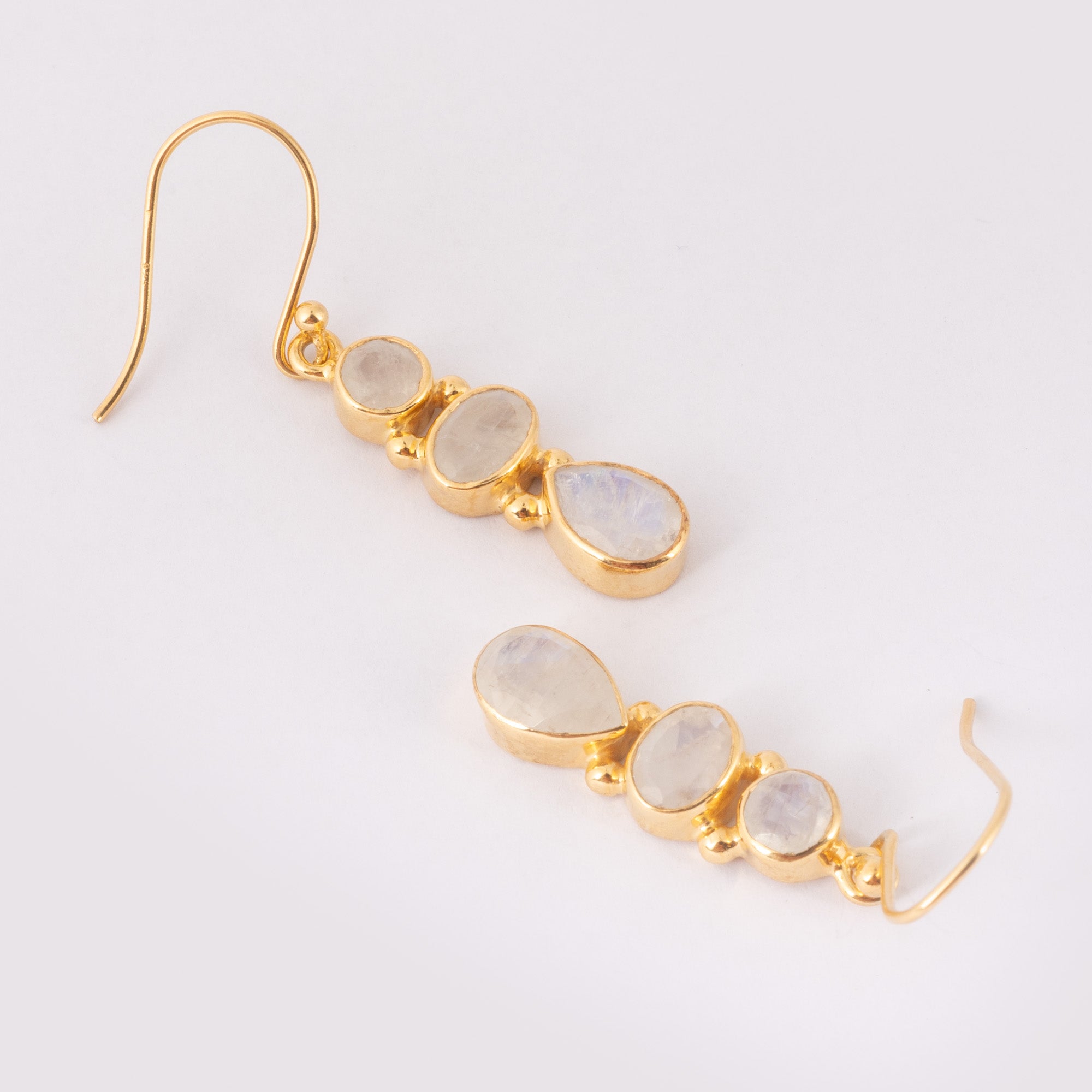 Glow with mystic charm in these sterling silver Gold Plated moonstone earrings. The shimmering moonstone reflects soft hues, making each piece unique. Bold yet elegant, these earrings are ideal for adding grace to evening outfits