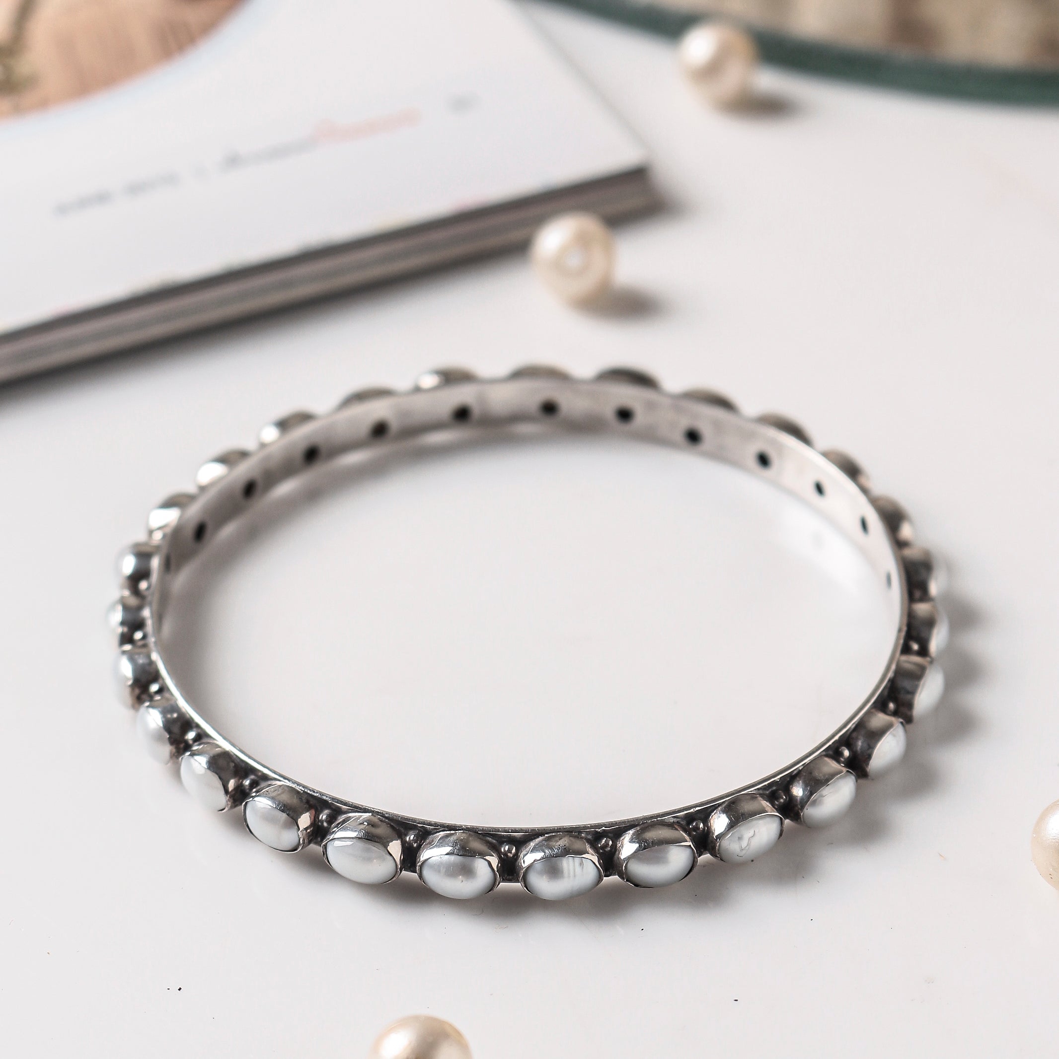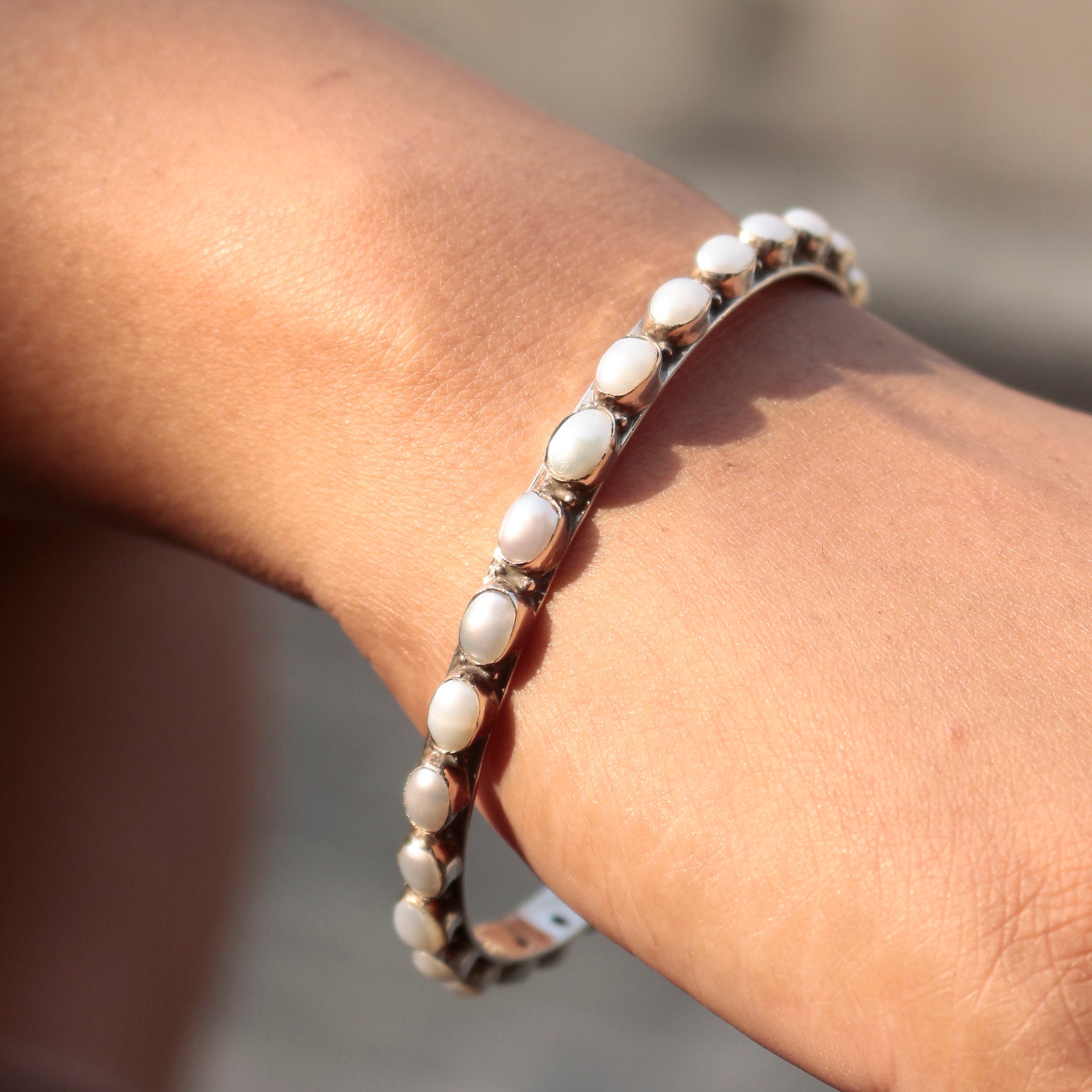 Graceful and timeless, this Pearl Silver Bangle captures understated luxury. The soft glow of pearls paired with polished silver makes it a perfect gift for any occasion.