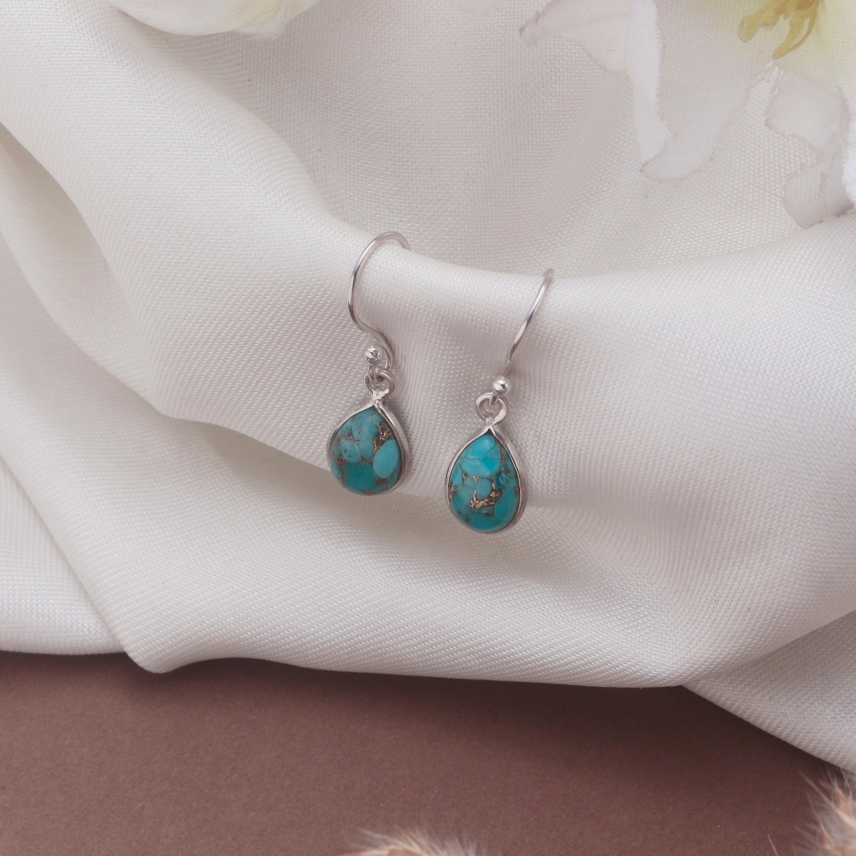Fusionari 925 sterling silver Turquoise earrings β delicate handcrafted blue gemstone earrings for a serene look.
